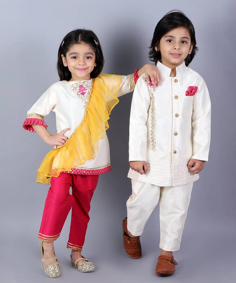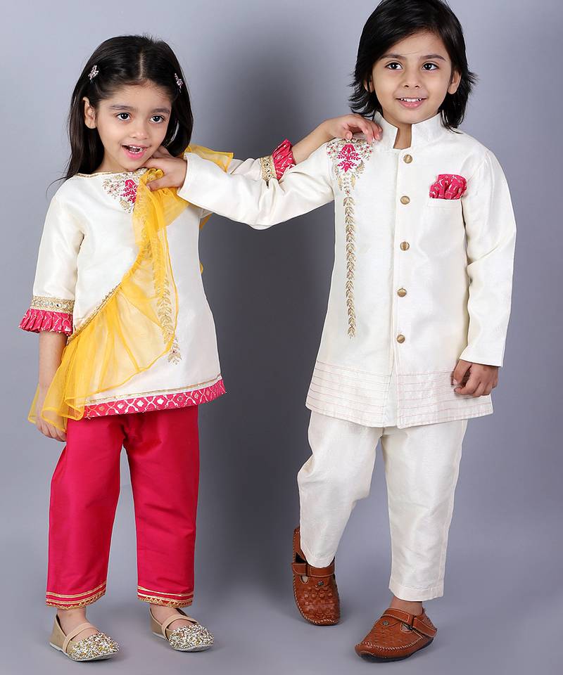 | Product Name | White Embroidered Raw Silk Sherwani Set | |