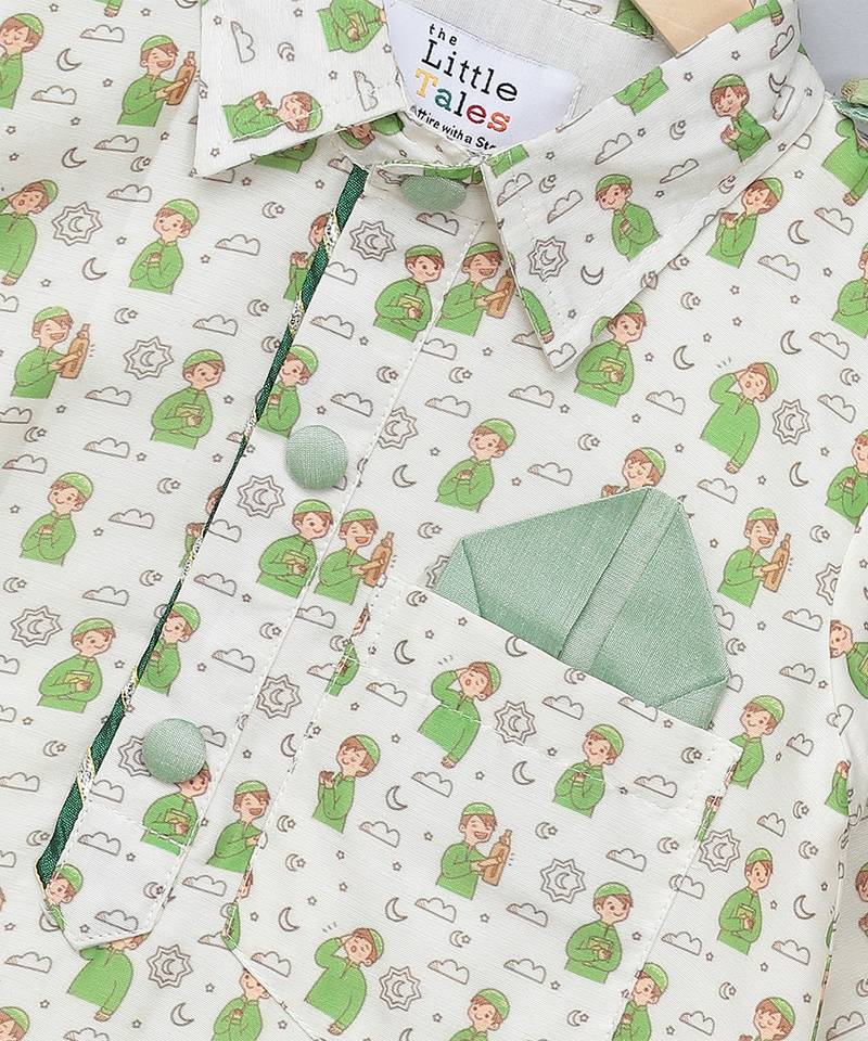 | Product Description | Eid Digital Printed Pathani Kurta Set With Cotton Lining Beneath. Cotton Silk Pleated Elasticated Salwar