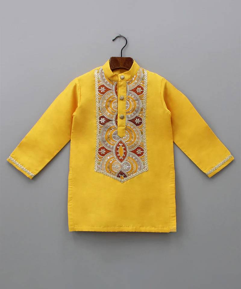 | Product Name | Yellow Embroidered Cotton Silk Kurta Pyjama | |