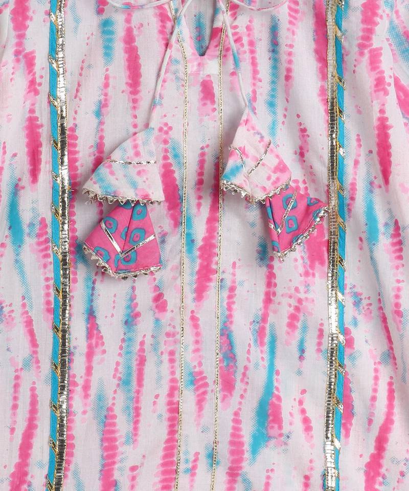| Product Name | The Magic Wand Girls Ethnic Floral Print 3/4th Sleeves Gota Lace Kurta & Sharara Set With Dupatta Pink | |