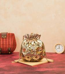 Gold silk floral embroidered potli bag
