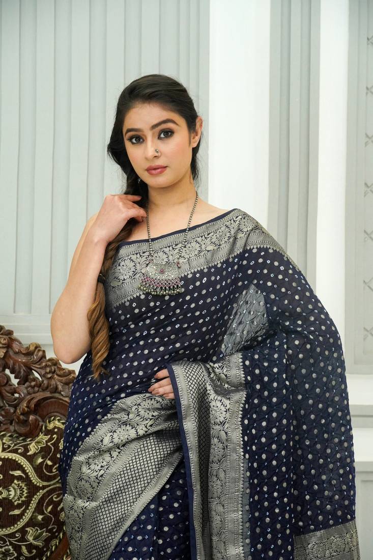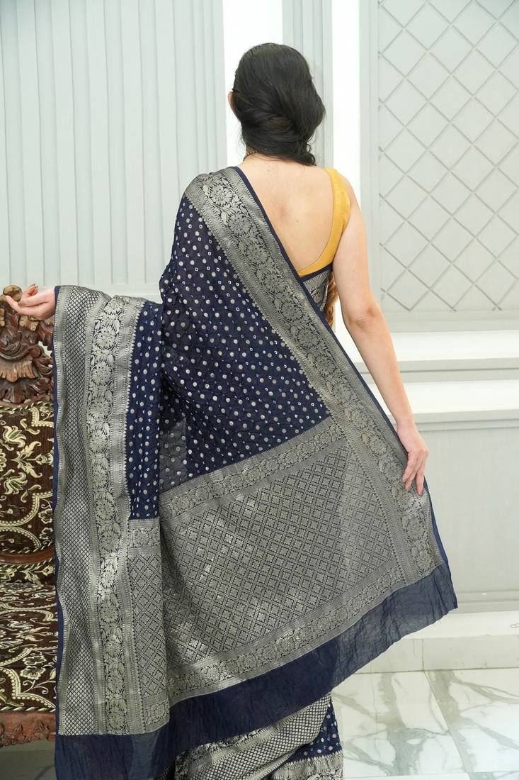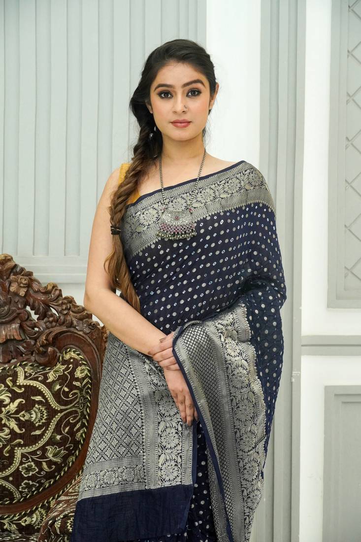 | Product Name | Troaf Navy Blue Bandhani Georgette Silk Banarasi Saree | |