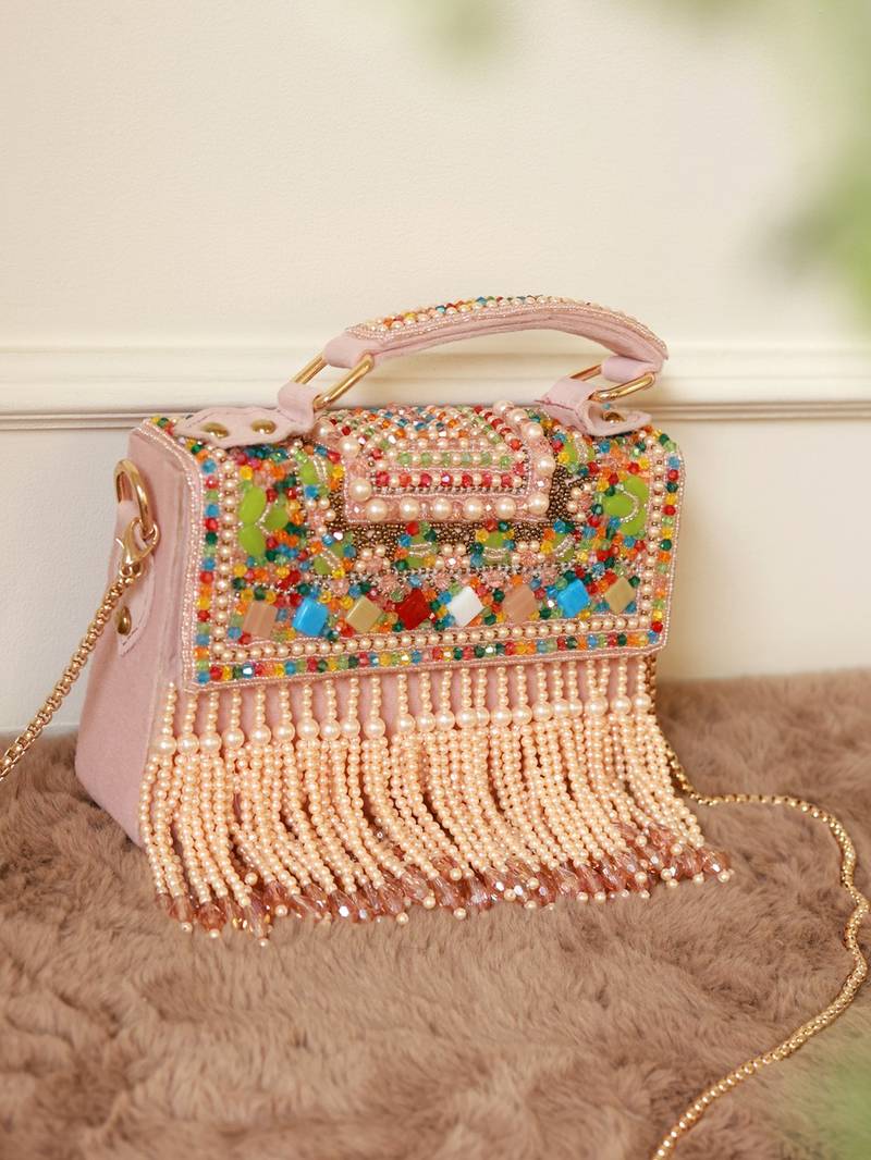 Product Description | Handcrafted With Meticulous Attention To Detail, Petite Embroidered Mini Potli With Glass Bead Hangings Showcases The Skill And Expertise Of Our Artisans. The Embroidery Work Is Executed With Precision, Showcasing Impeccable Craftsmanship And A Keen Eye For Detail. Each Delicate Stitch Tells A Story Of Artistry And Tradition, Showcasing Timeless Motifs And Patterns That Have Been Passed Down Through Generations.The Compact Size Is Perfect For Carrying Your Essentials While Exuding An Aura Of Grace And Charm. The Choice Of Luxurious Fabrics, Such As Lustrous Silk Or Plush Velvet, Adds A Touch Of Opulence To Its Overall Design.To Further Elevate Its Allure, The Potli Is Adorned With Glass Bead Hangings That Gently Sway And Sparkle With Every Movement. These Carefully Selected Beads, With Their Captivating Hues And Shimmering Facets, Add A Touch Of Glamour And Enchantment To The Overall Composition.
