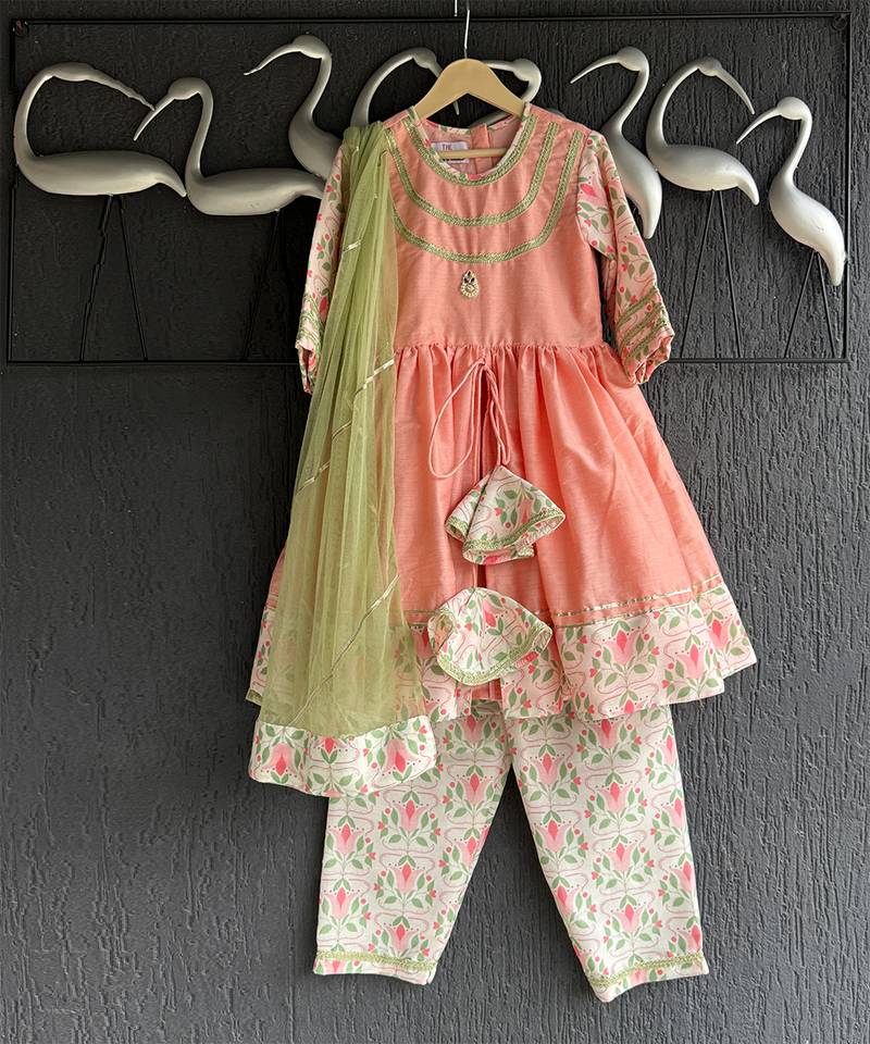 Peach embroidered cotton kurta set