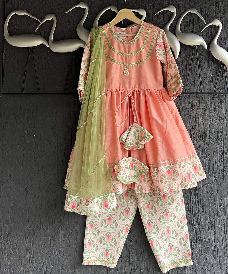 Product Name Peach Embroidered Cotton Kurta Set