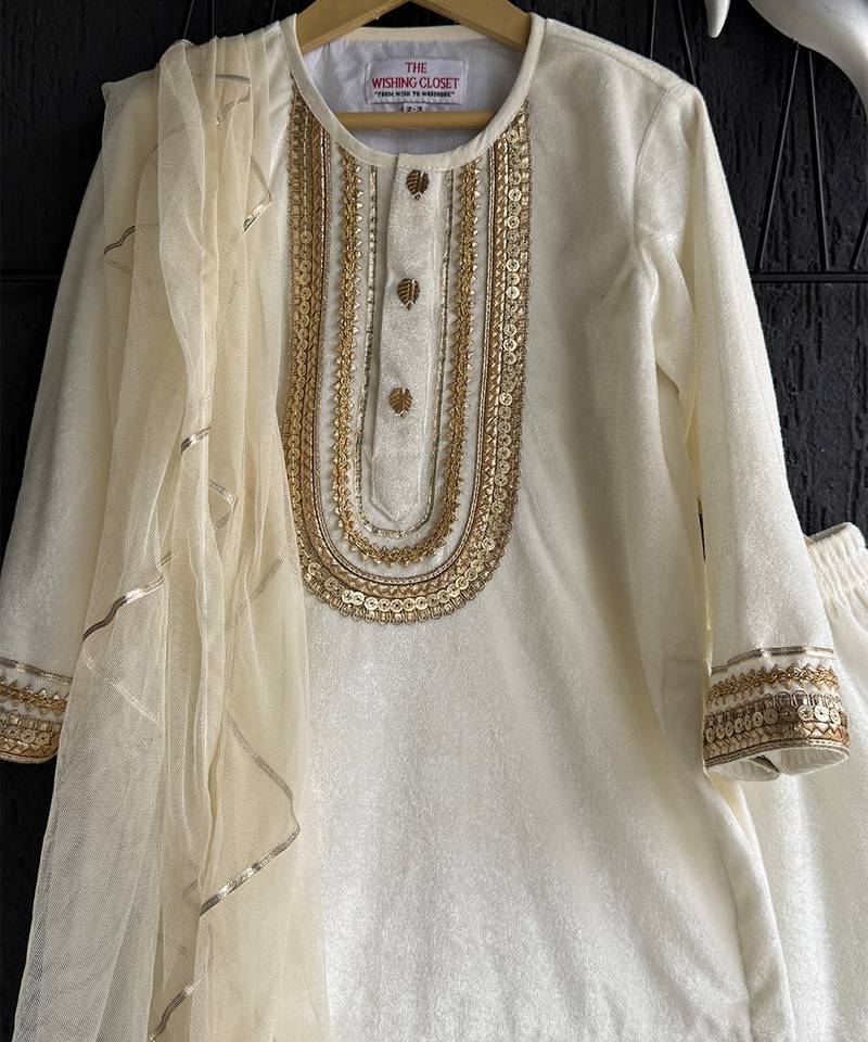 | Product Name | White Embroidered Velvet Kurta Set | |