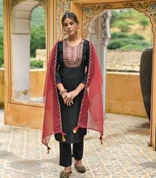 Black color sequence embroidery viscose rayon fabric stitched kurta pant and dupatta set