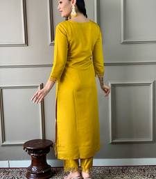 | Product Name | Mustard Embroidered Chanderi Fabric Straight Kurta, Pant And Dupatta Set | |
