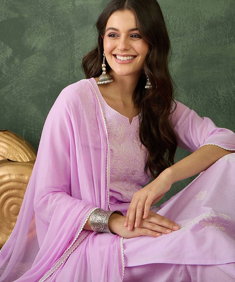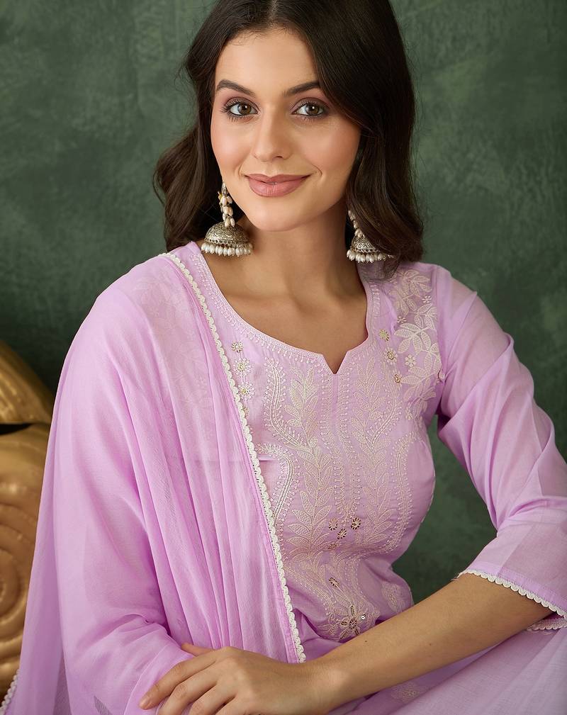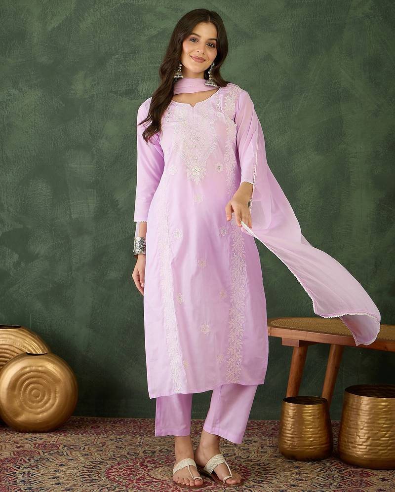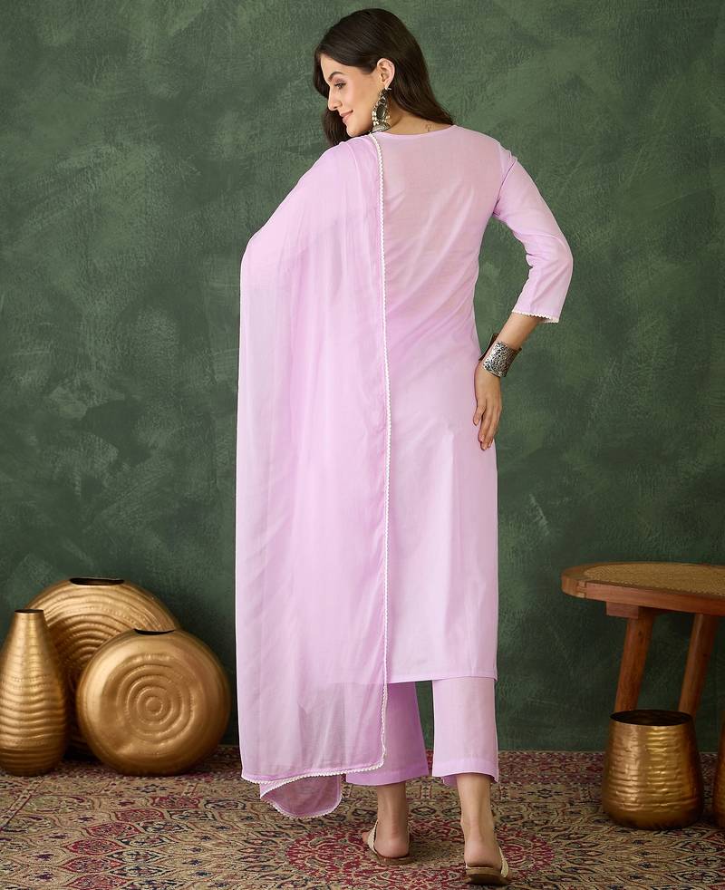 Product Name | Women Gorgeous Cotton Blend Fabric Thread Work Straight Kurta, Pant And Dupatta Set | |