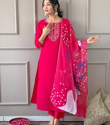 | Product Name | Women's Beautiful Embroidery Work Rayon Fabric Straight Kurta Pant And Dupatta Set | |