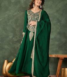 Women's beautiful embroidery work vichitra silk fabric flared kurta pant and dupatta set
