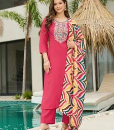 | Product Name | Pink Rayon Embroidery Work Straight Kurta Pant And Dupatta Set | |