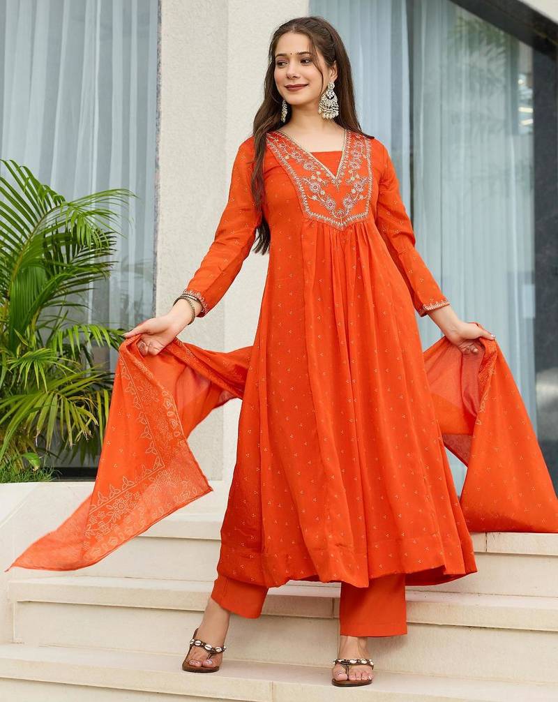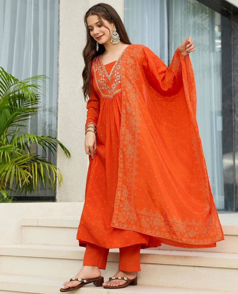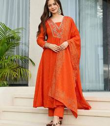 Product Name | Women's Gorgeous Embroidery Chinon Fabric Flared Kurta Pant And Dupatta Set | |