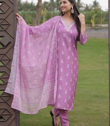 Women's gorgeous rayon fabric printed work straight kurta pant and dupatta set