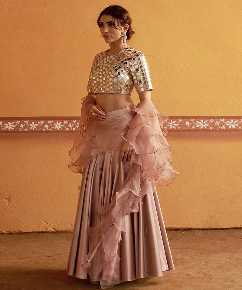 | Product Description | Make A Graceful Wedding Statement With This Pink Lehenga Choli, Designed For Brides And Wedding Celebrations That Demand Elegance With A Modern Touch. Crafted With Rich Silk Fabric, This Lehenga Set Blends Traditional Hand Craftsmanship With Contemporary Styling. The Silk Lehenga Features A Fluid, Structured Fall That Enhances Movement And Adds Royal Charm. It Is Beautifully Paired With A Stitched Silk Blouse, Highlighted By Intricate Hand Done Mirror Embroidery That Creates A Striking, Reflective Pattern Across The Surface. The Mirror Work Adds Depth, Texture, And Festive Sparkle—Perfect For Wedding Occasions. Completing The Ensemble Is A Soft, Sheer Organza Dupatta In A Matching Pink Tone, Styled With Delicate Ruffled Detailing For A Lightweight, Elegant Finish. The Contrast Of Structured Silk And Airy Organza Creates A Balanced Silhouette That Feels Luxurious Yet Effortless. This Fully Stitched Lehenga Choli Set Is Ideal For Wedding Ceremonies, Receptions, And Grand Festive Events. Its Refined Pink Hue, Hand Embroidery, And Premium Fabrics Make It A Timeless Choice For Women Who Appreciate Handcrafted Bridal Fashion. |