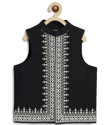 This Black Embroidered Cotton Nehru Jacket Exudes Refined Elegance With Its Structured Silhouette And Intricate Detailing. Crafted From Breathable Cotton, It Offers Comfort While The Embroidery Adds A Festive, Sophisticated Touch. Perfect For Weddings, Celebrations, And Formal Occasions, It Layers Effortlessly Over Kurtas Or Shirts For A Polished, Traditional Look.