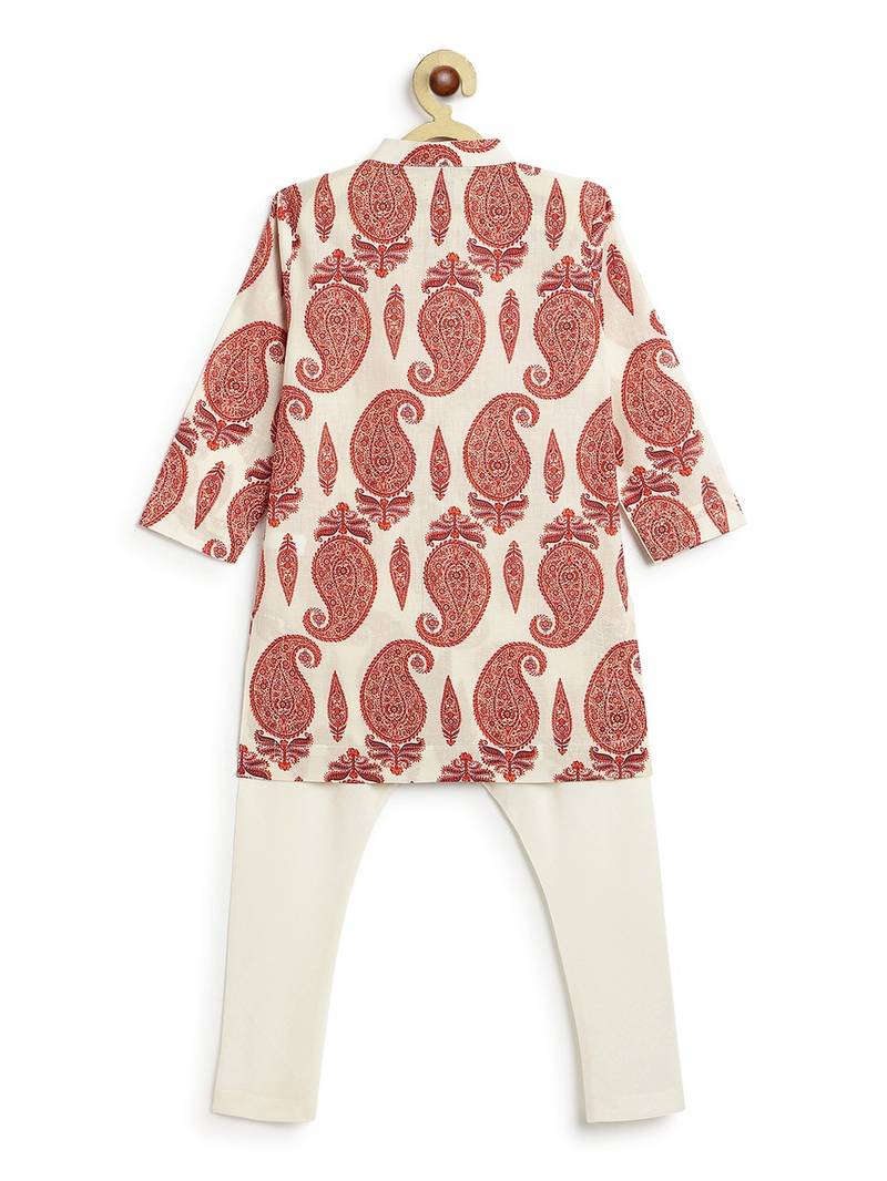 Product Description | Elevate Your Little One’s Festive Style With This Elegant Cream Kurta Set Featuring A Timeless Paisley Print. Crafted From 100% Pure Cotton, This Outfit Is As Breathable As It Is Stylish, Perfect For Long Celebrations. The Intricate Paisley Motif Adds A Touch Of Heritage Charm, While The Classic Silhouette Keeps It Versatile For Both Traditional Functions And Family Gatherings.