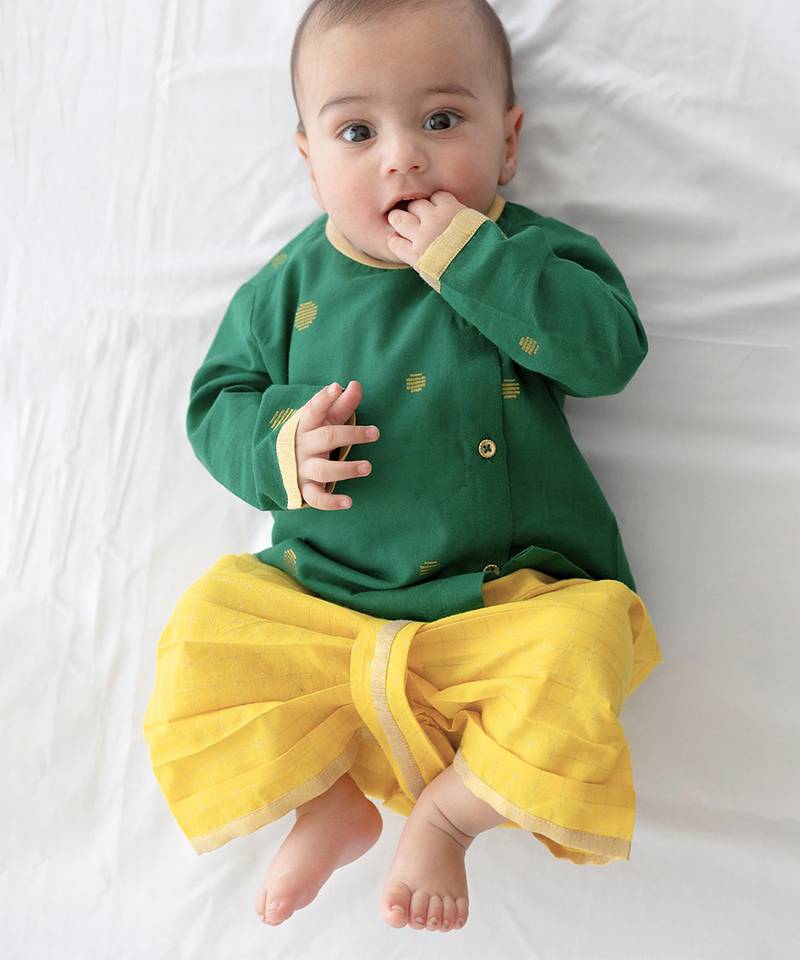 | Product Name | Green Jacquard Cotton Kurta Dhoti Set | |