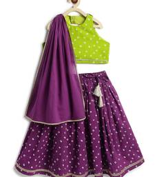 Product Description | Vibrant Colors, Playful Charm, And Endless Twirls – This Lehenga Set Has It All! The Bright Green Blouse (With Shoulder Tabs For The Duapatta) Pairs Beautifully With The Rich Purple Lehenga With Bandhani Inspired Print. A Soft Dupatta Completes The Festive Look, Making It The Perfect Outfit For Weddings, Pujas, And Special Occasions.