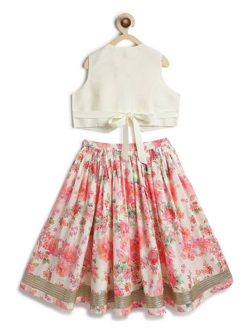 Product Description | A Festive Outfit That’s As Fun As It Is Fashionable! This 3 Piece Lehenga Set Features The Cutest Blouse, A Floral Lehenga And An Adorable Matching Bandana To Complete The Look. Embellished With Lace And Tassel Accents, It’s Designed For Twirling, Smiling, And Making Memories.