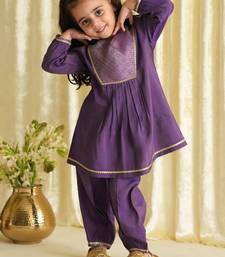Purple embroidered brocade kurta set