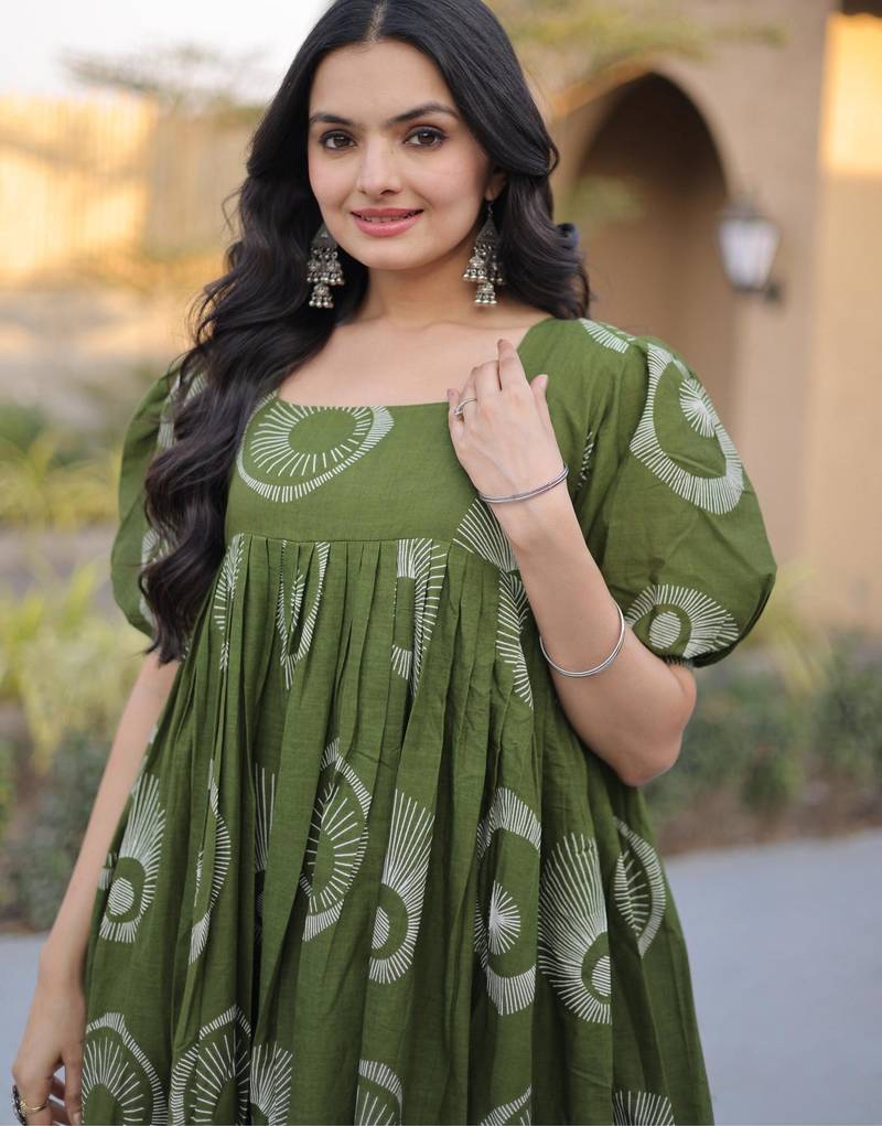 | Product Name | Green Cotton Printed Frill Dresses | |