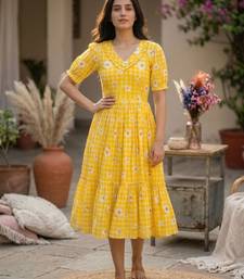 | Product Name | Yellow Muslin Silk Printed Checked Fit And Flared Dresses | |
