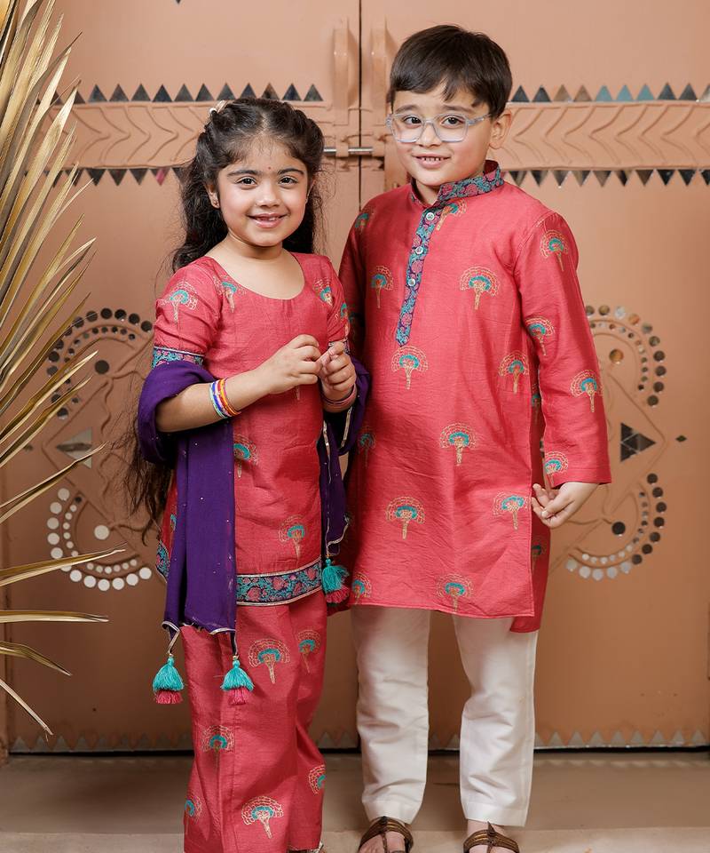 | Product Name | Pink Block Printed Cotton Silk Kurta Set | |
