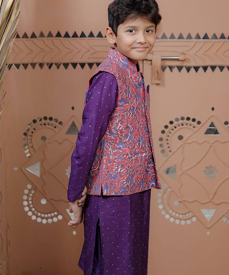 | Product Name | Purple Floral Printed Modal Nehru Jacket Set | |