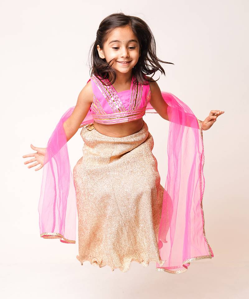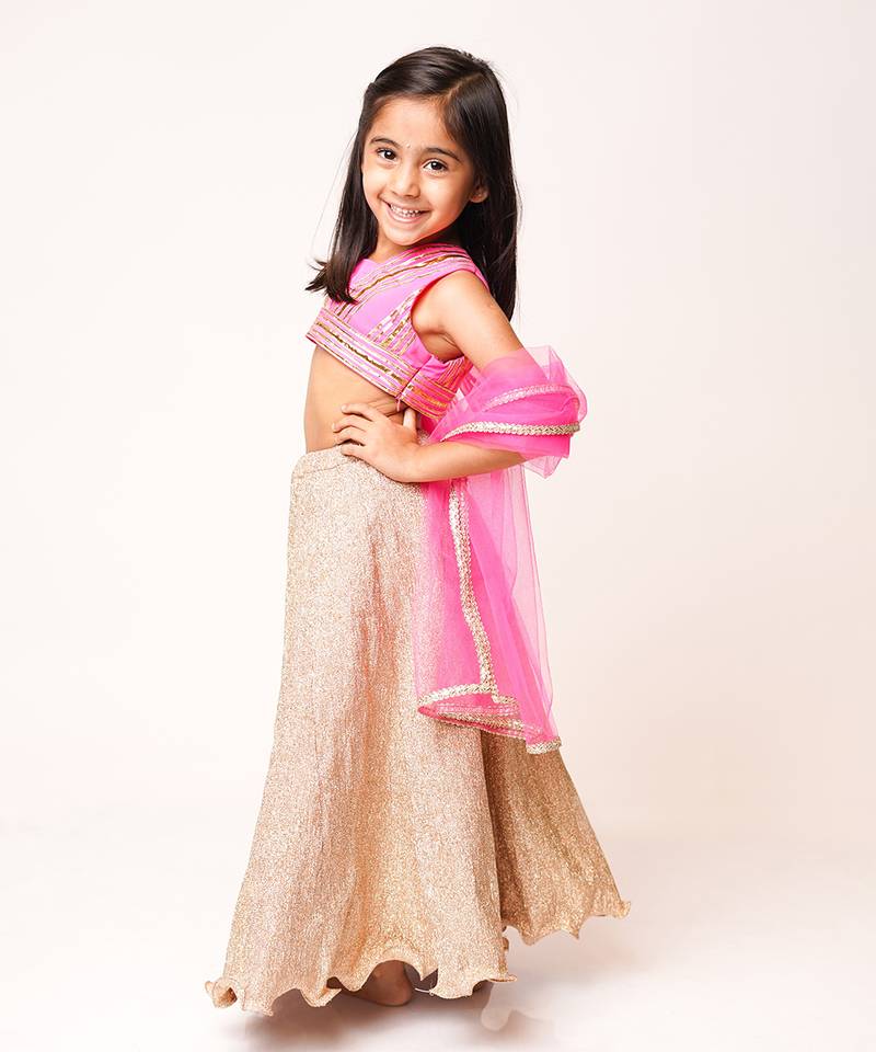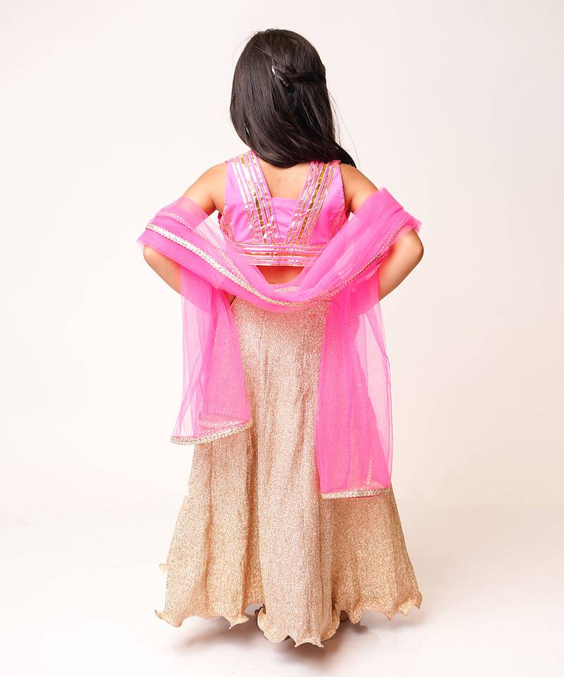 | Product Description | Featuring Pink Gota Top With Golden Lehenga. |