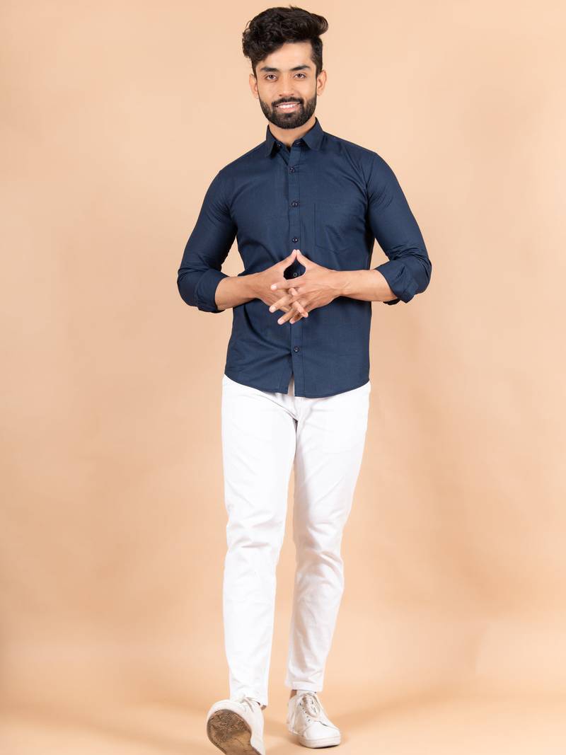 | Product Name | Blue Plain Cotton Mens Casual Shirts | |