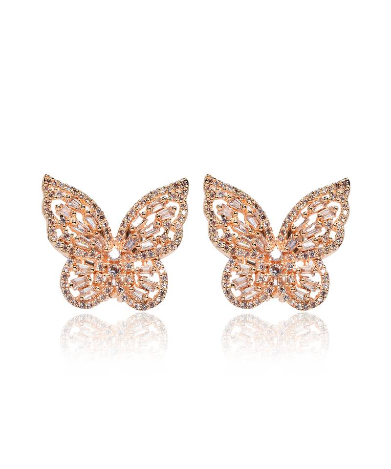 | Product Description | Rose Gold Plated Butterfly Faux Diamond Earrings On A Mixed Metal Base. |