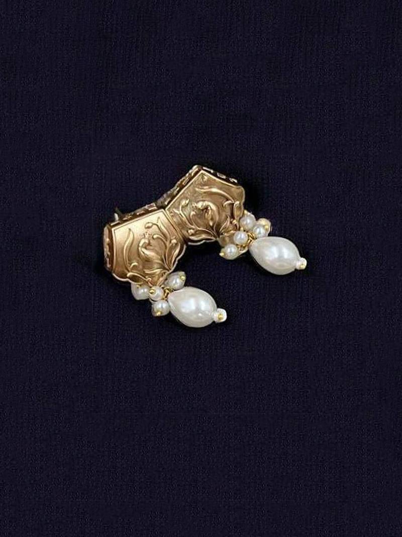 Product Name | Antique Gold Tone Engraved Necklace With Pearl Drops & Matching Earrings Traditional Gold Finish Jewelry By Treemoda | |
