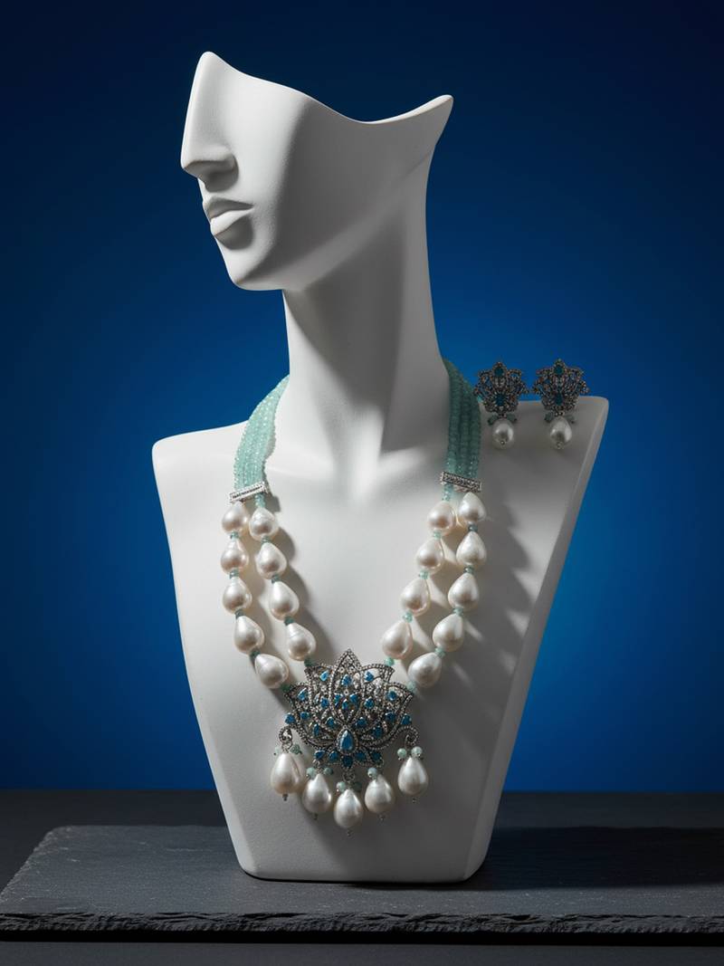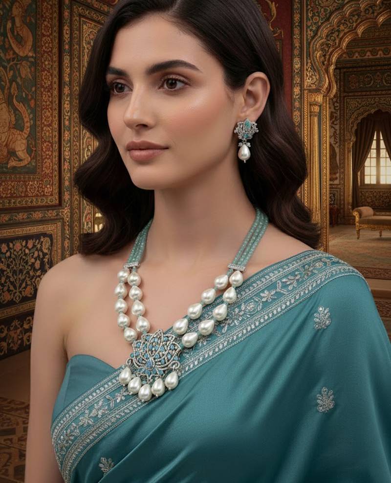 | Product Description | Beautifully Handcrafted Necklace With Premium Pearl Beads.Dual Layer Design Gives A Rich And Royal Look.Stunning Centerpiece With Blue Stones Adds Elegance And Shine.Comes With Matching Earrings For A Complete Set.Perfect For Weddings, Parties, And Festive Functions.Lightweight And Comfortable To Wear All Day.A Stylish Blend Of Traditional And Modern Design. |