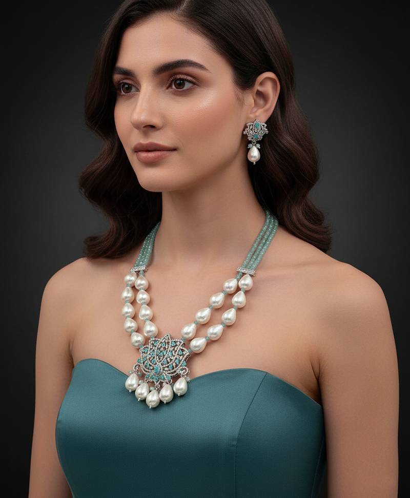| Product Name | Elegant Handcrafted Dual Layer Pearl Beaded Necklace Set | |