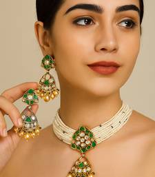 Product Name | Elegant Kundan & Pearl Choker Necklace Set With Green Enamel Detailing Traditional Gold Finish Jewelry By Treemoda | |