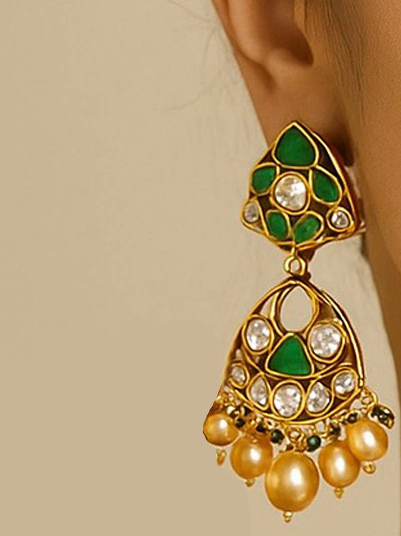 Elegant kundan & pearl choker necklace set with green enamel detailing traditional gold finish jewelry by treemoda