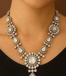 Product Name | Grand Kundan Polki Necklace With Circular Floral Motifs & Matching Earrings Traditional Gold Finish Jewelry By Treemoda | |