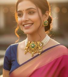 | Product Description | Made From High Quality Brass Metal With A Traditional Finish.Handcrafted Fusion Design For A Rich And Stylish Look.Decorated With Beautiful Cheed Beading On Both Sides.Center Lotus Motif Adds A Classic And Elegant Feel.Comes With A Matching Finger Ring For A Complete Set.Perfect For Weddings, Festivals, And Ethnic Occasions.Comfortable To Wear And Sits Beautifully On The Neck. |