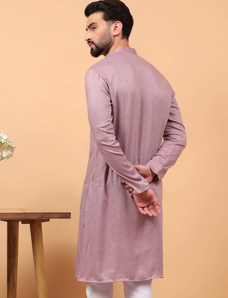 Lavender sequins work rayon men kurta