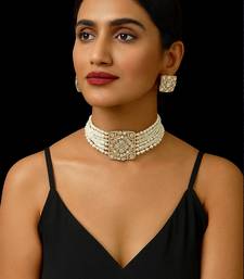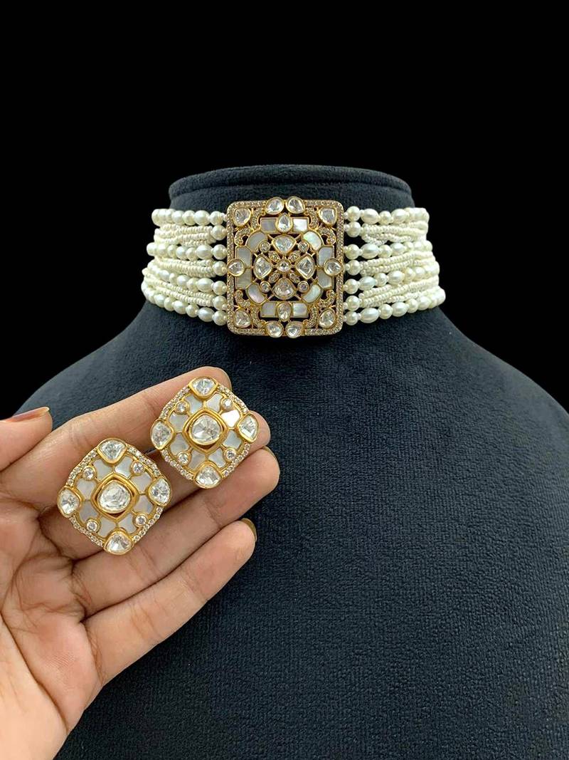 Product Description | Statement Choker With Layered Pearl Strands And A Bold Square Centerpiece Intricately Crafted Kundan Work Set In A Square Gold Tone Frame With Fine Detailing Matching Square Shaped Studs, Embellished With High Quality Kundan Stones For A Coordinated Look Multi Layered Pearls Enhance The Richness And Sophistication Of The Design Gold Plated Base For A Luxurious Appeal.Perfect Blend Of Traditional And Contemporary, Ideal For Weddings, Receptions, And Festive Occasions. |
