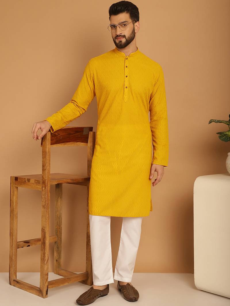 | Product Name | Yellow Chikankari Cotton Embroidery Men Kurta | |