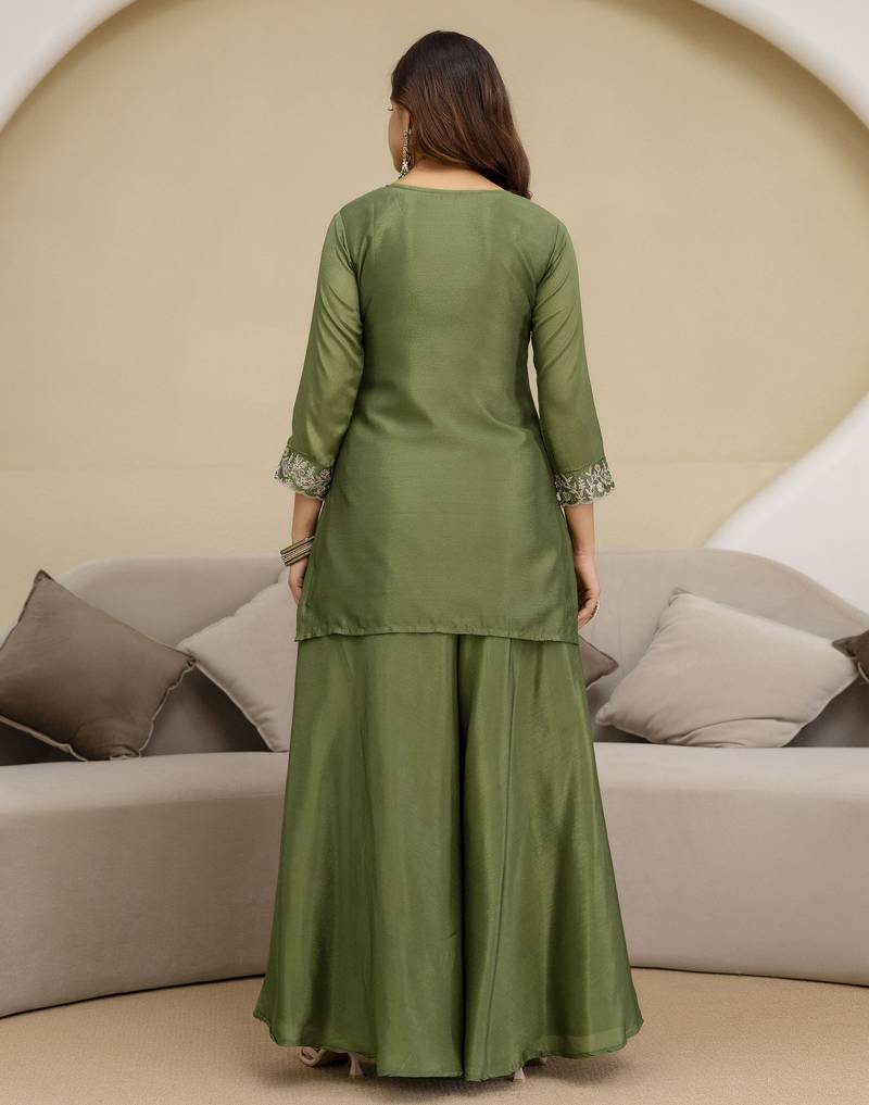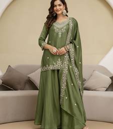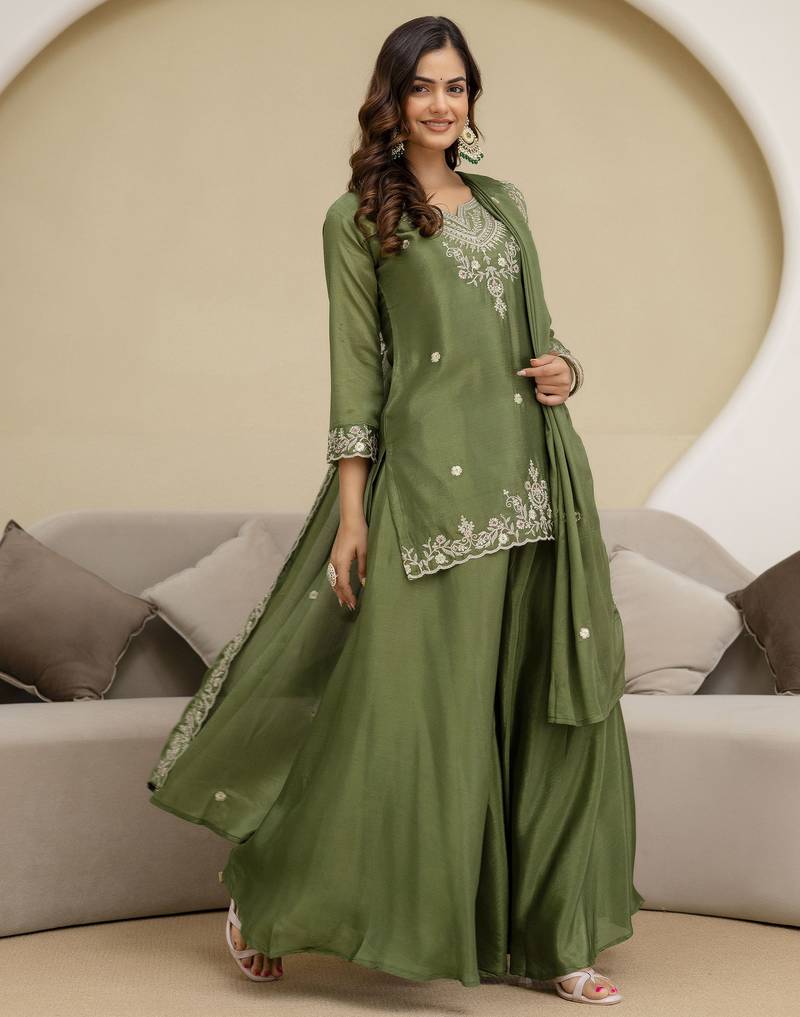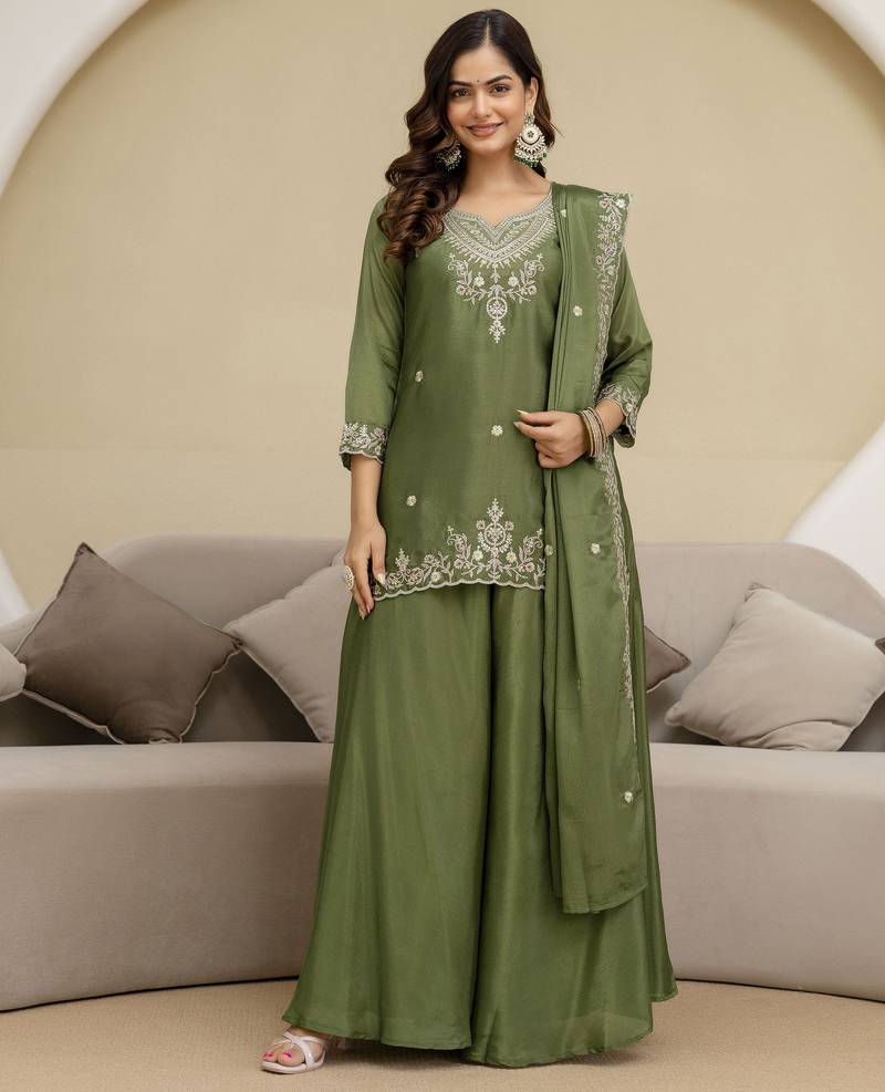 Art silk embroidery sequence work designer kurta palazzo set with dupatta stitched
