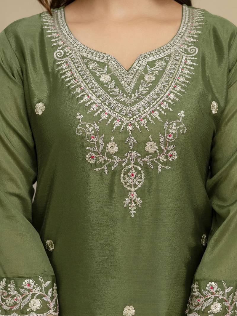 | • | Bottom | : | Color- Mehendi / Fabric- Art Silk |