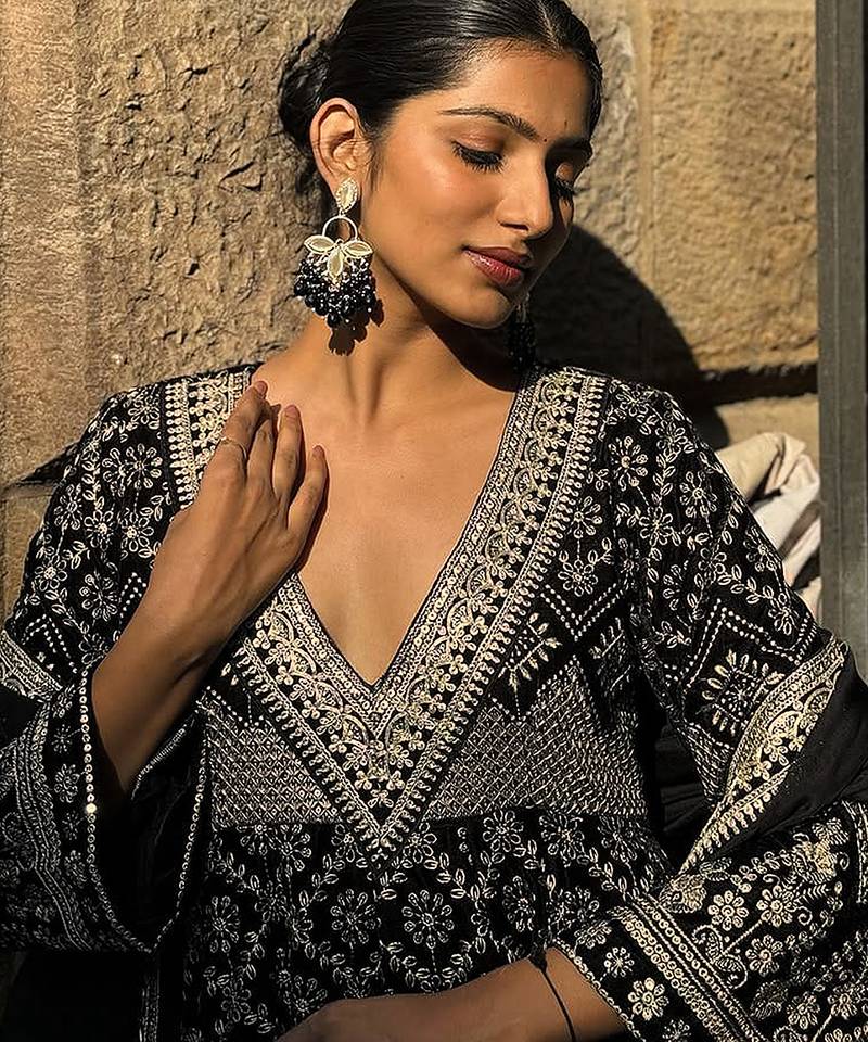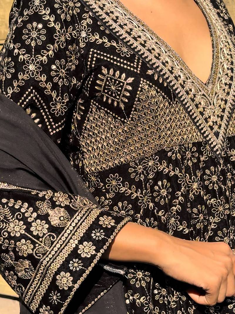 Black georgette embroidery sequence work anarkali kurta pant with dupatta stitched
