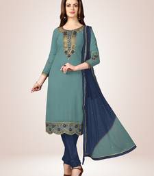 Trendmalls sky blue embroidered georgette party wear kurta pant with dupatta salwar suit set semi stitched