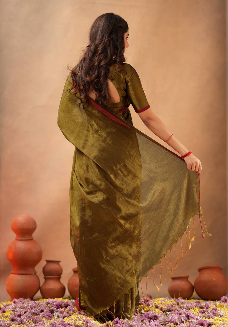 | Product Name | Brown Pure Tissue Cotton Handloom South Indian Style Saree With Unstitched Blouse Piece | |