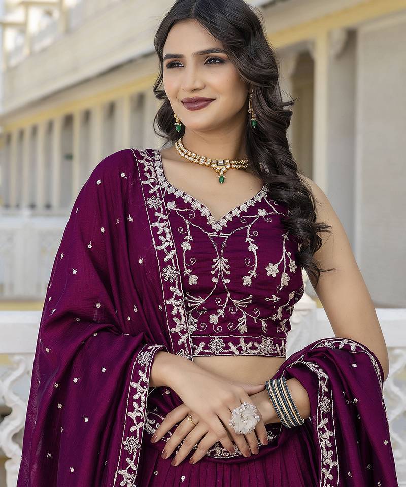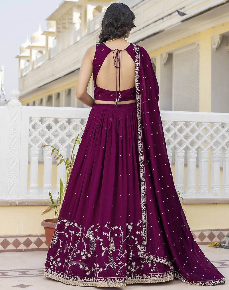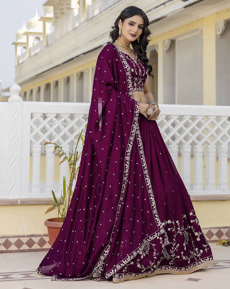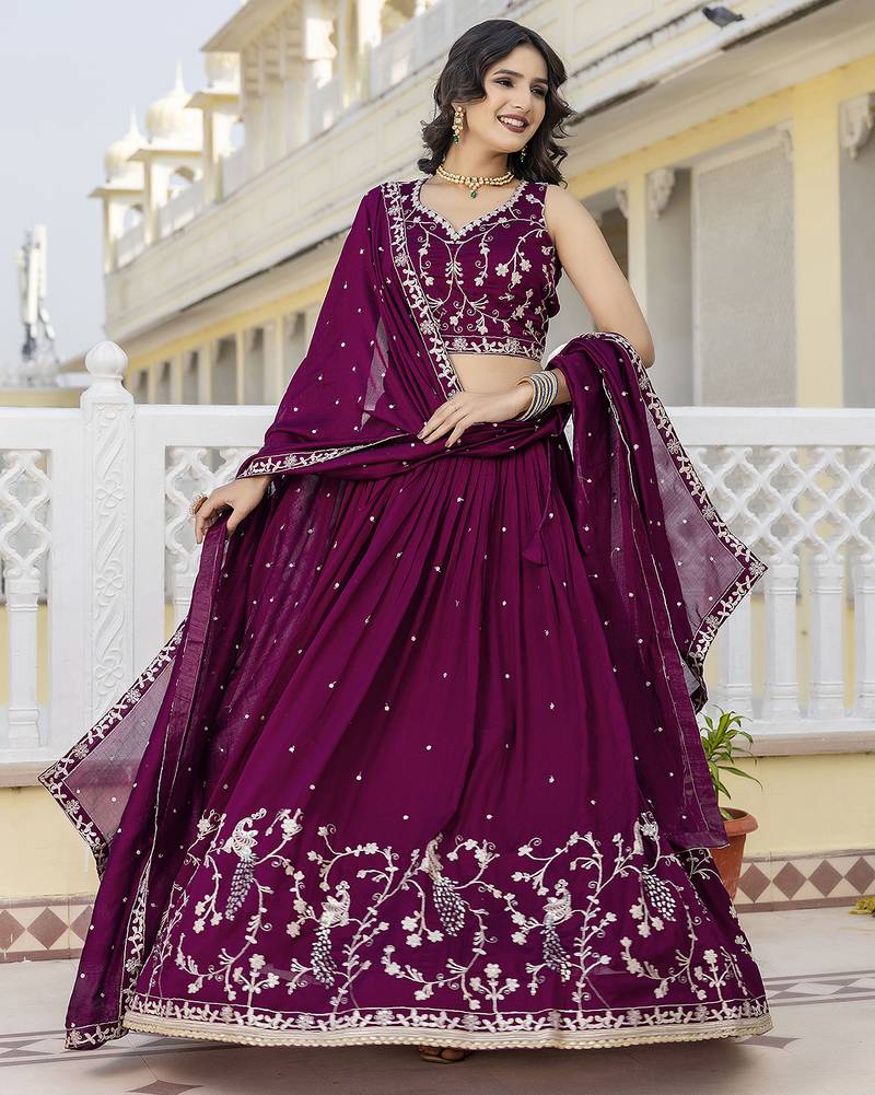 Designer art silk embroidery sequin work lehenga choli with dupatta for women