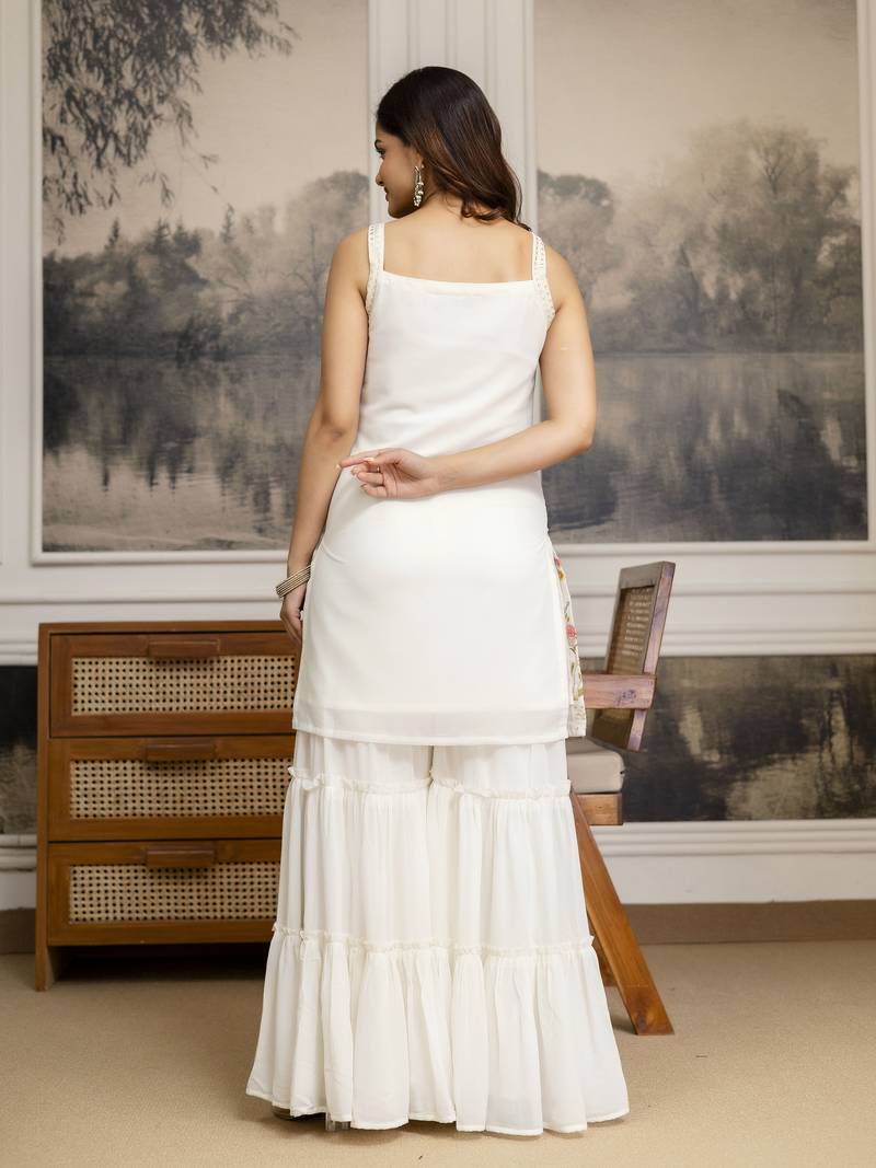 Georgette embroidery sequence work kurta sharara set with dupatta stitched