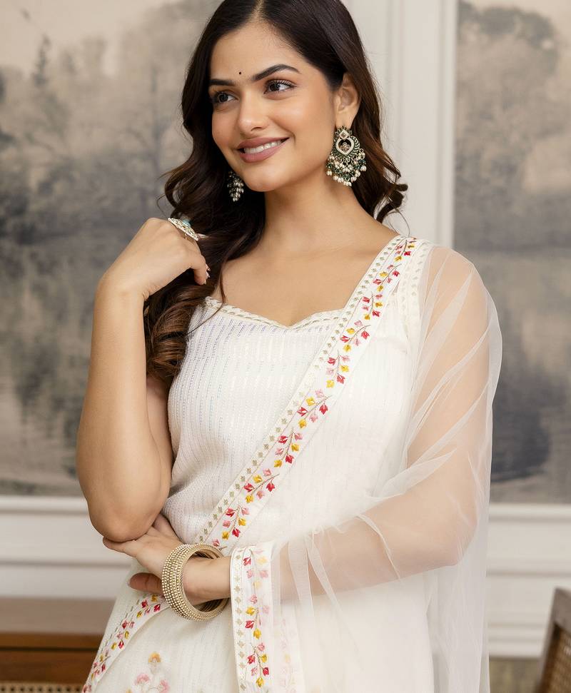 | • | Bottom | : | Color- Off White / Fabric- Georgette |